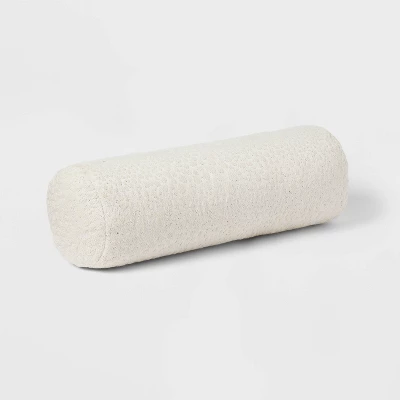 Add some feline flair to your seating spot or bedscape with this Luxe Cheetah Jacquard Round Decorative Pillow from Threshold™. In a cylindrical silhouette, this bolster throw pillow has an ivory-colored surface adorned with tonal, raised cheetah spots for a tastefully textured aesthetic. It is made of jacquard fabric with comfy filling to provide plenty of cushioned comfort while you sit and relax.