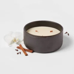 16oz Blackened Bowl Ceramic With Multi Woodwick And Dustcover Acorn + Pine Candle Black – Threshold™